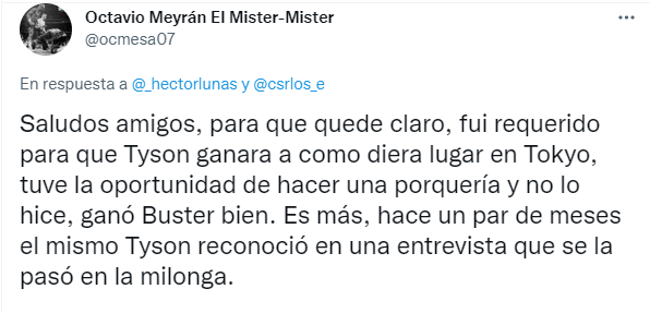 Ante lo escrito por Mike Tyson en su libro, Octavio Meyrán me respondió por Twitter su versión de los hechos.